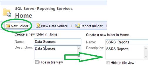 • Add “Data Sources” folder to SSRS Web Portal
